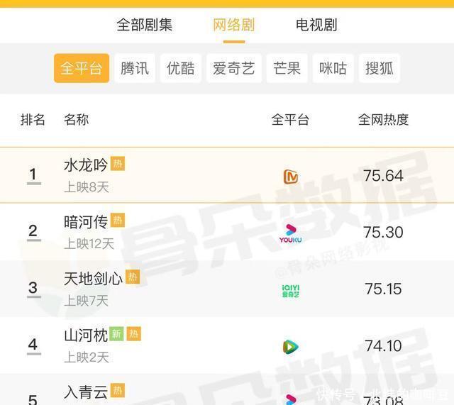 电视剧全网热度榜,《天地剑心》跌至第3,第一热度高达75.64,你在追哪部?